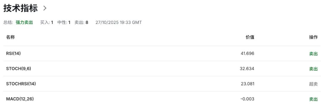 从技术指标观察,日线级别显示,英镑兑美元自9月19日跌破布林带中轨后,持续运行于中轨与下轨构成的弱势区间,表明空头力量占据主导地位。当前布林带下轨指向1.3270区域,构成短期动态支撑,而上轨动态阻力上移至1.3510区域,中轨1.3390水平则构成多空力量分界的关键枢纽。值得关注的是,布林带通道由前期收窄态势初现扩张迹象,暗示市场波动率正在提升,结合当前价格走势,预计随着通道扩张,下行动能可能进一步增强,需警惕汇率进一步打开下行空间。动能指标系统同样确认空头主导格局。14日相对强弱指标(RSI)目前读数为42,处于弱势区间但未达超卖状态,表明空头动能仍存释放空间,汇价存在进一步下探的技术条件。
